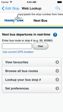 1. Tap the TransLink lookup button. You will be taken to the Web Lookup.