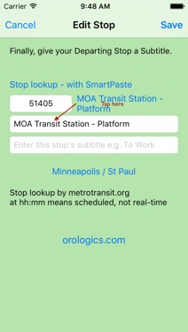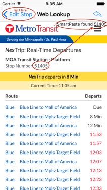 3. The new SmartPaste feature automatically copies the stop number and pastes it into stop ID field when you tap the Edit Stop button: